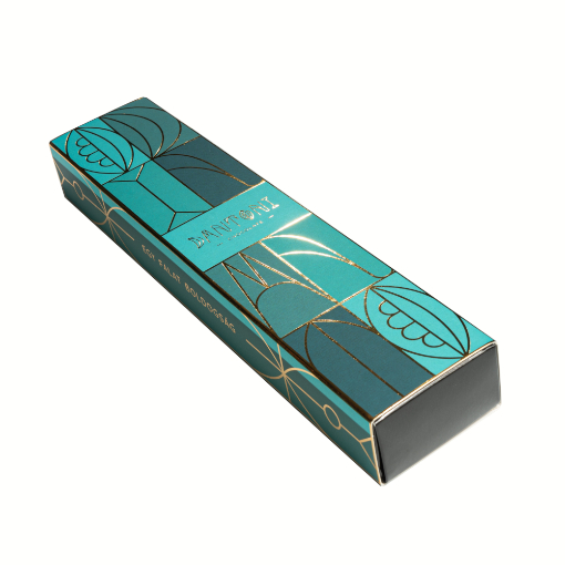Egyedi stickbox csomagolásban is megrendelheted kézműves csokoládéinkat. A fekete fényes dobozba már kibontás előtt is látszanak az igényesen díszített bonbonok. A csomagolásra a bordó mintás palást teszi fel a pontot. A dobozban 5 db kézműves bonbon található vegyesen.